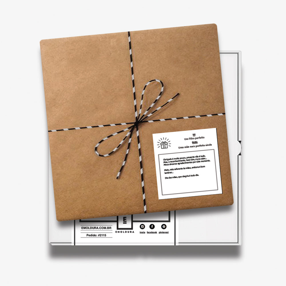 Nós fazemos a impressão da foto, montamos na moldura de 15x15cm da cor que você escolher e embalamos pra presente. Na embalagem vai uma etiqueta com espaço para você escrever sua mensagem. A embalagem para presente vai dentro de outra caixa para não danificar no correio.